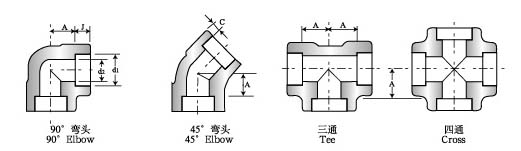 本表列出的為承插焊管件各相同部分尺寸,不同部分標(biāo)準(zhǔn)規(guī)定的接管尺寸及承插孔徑d1、流通孔徑d2尺寸見承插焊管件的接管外徑、承插孔徑及流通孔及流通孔尺寸表。