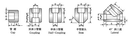 本表列出的為承插焊管件各相同部分尺寸,不同部分標(biāo)準(zhǔn)規(guī)定的接管尺寸及承插孔徑d1、流通孔徑d2尺寸見承插焊管件的接管外徑、承插孔徑及流通孔及流通孔尺寸表。